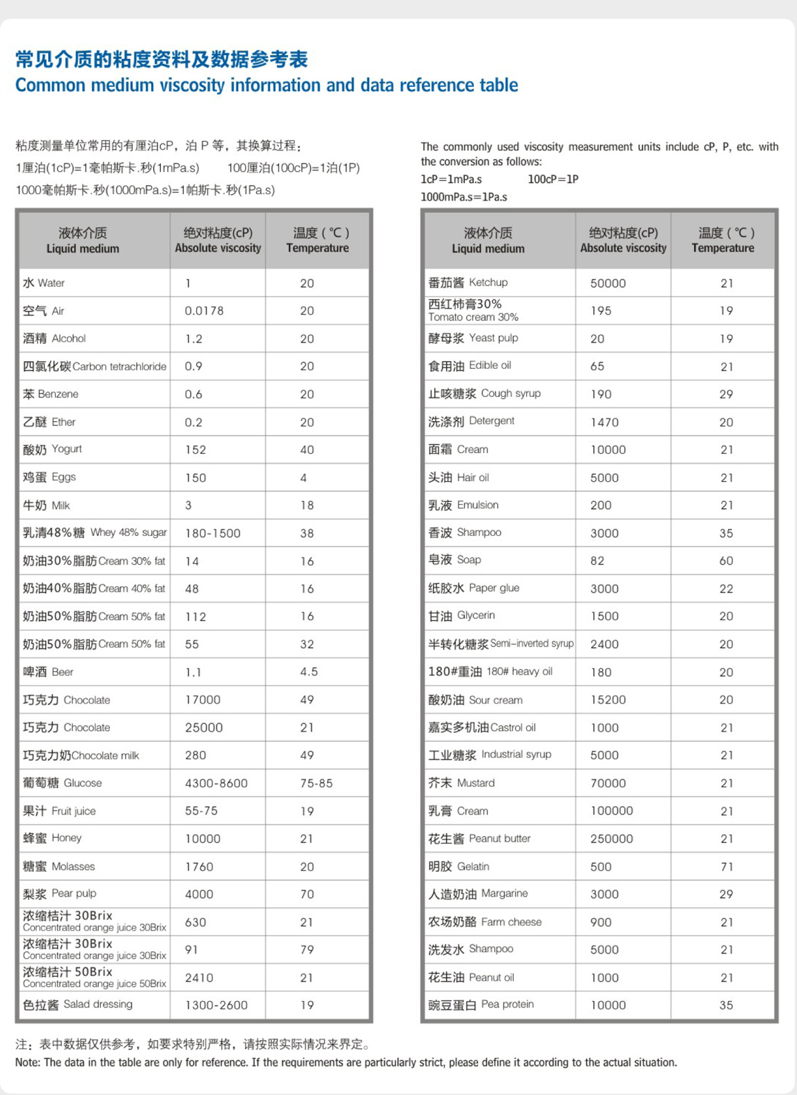 常見介質(zhì)的粘度資料及數(shù)據(jù)參考表 返回