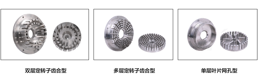 定子-轉(zhuǎn)子結(jié)構(gòu)的主流設(shè)計位定轉(zhuǎn)子齒合型和葉片網(wǎng)孔型兩種。剪切頭可設(shè)置為單圈或多圈、單級或多級,且各種定子、轉(zhuǎn)子、可根據(jù)需要方便的進(jìn)行拆換和搭配組合,以獲得優(yōu)化的分散與混合效果。